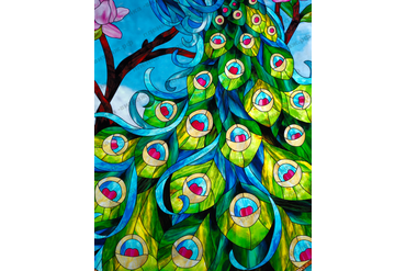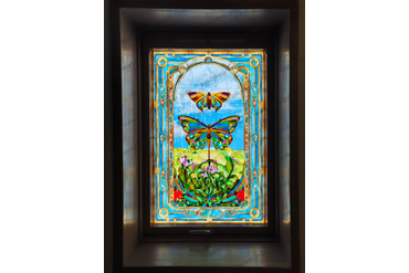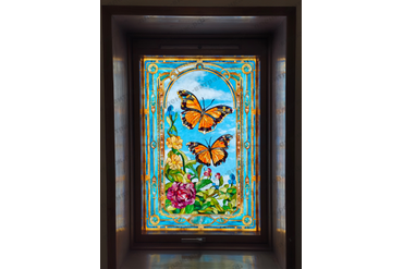 Витражи с птицами, бабочками в монсардных окнах в Тайском СПА-центре. г.Пушкино село Левково 32А